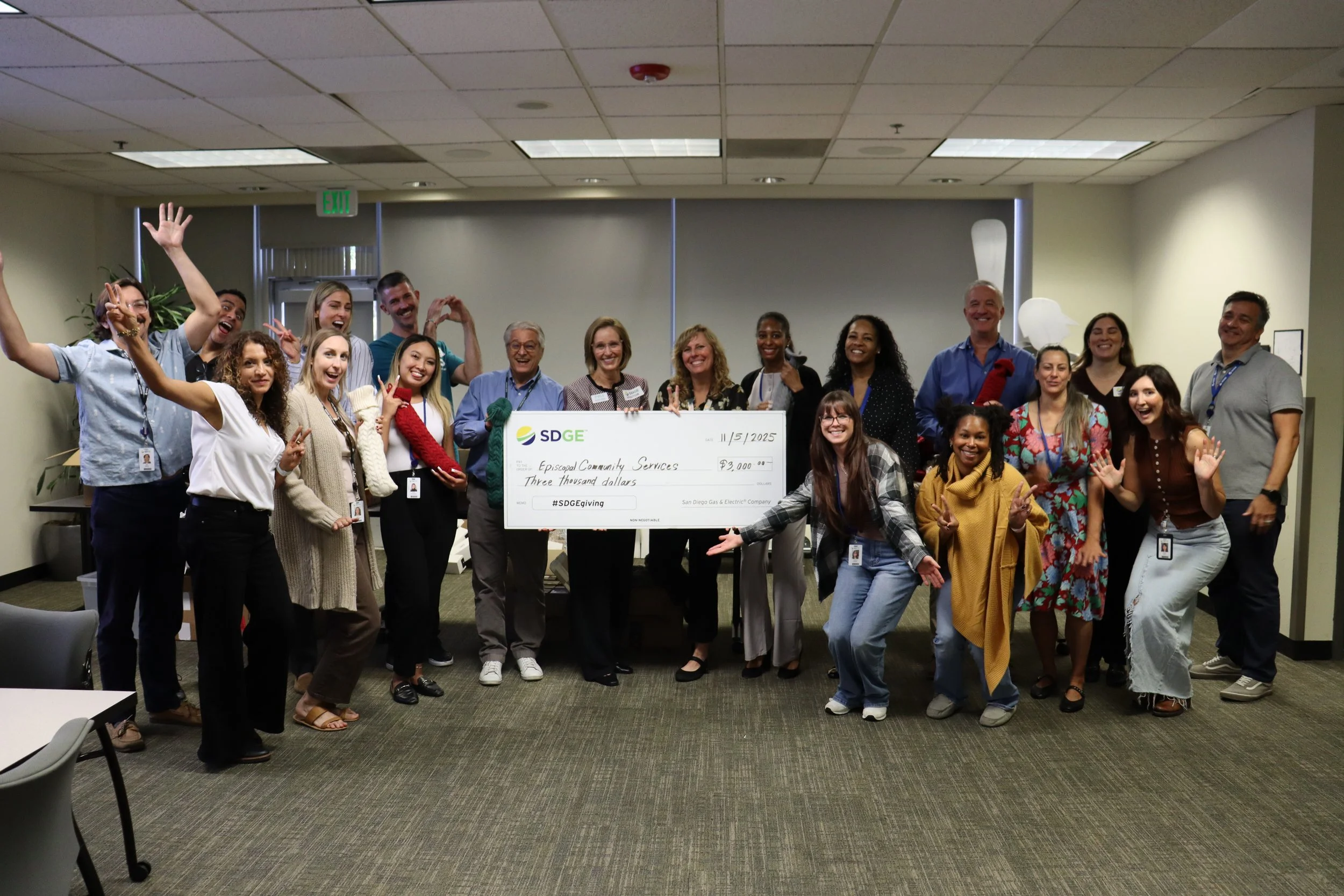 San Diego Gas & Electric (SDG&E) gave ECS a $3,000 SDGivE grant supporting our programs and helped packed 252 welcome home stockings that will bring comfort to clients at CERRC this holiday season. November 2025.