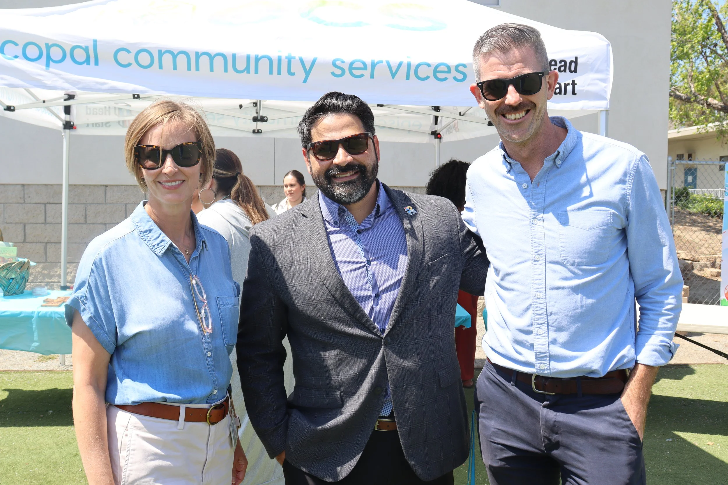(From left to right) CEO Elizabeth (Fitzsimons) Wilberg; ECS Board Vice President Oscar Gomez; and ECS Development Director Tim Whipple at the Día del Niño celebration. April 2025.