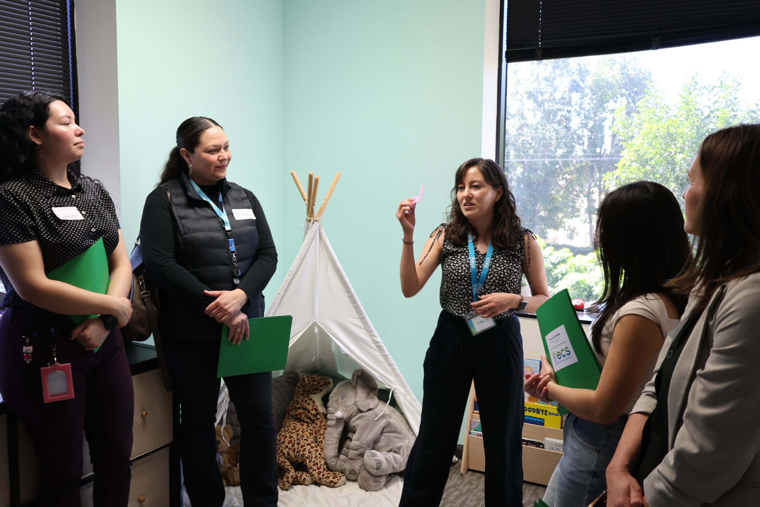 Last Friday, community members gathered at Para Las Familias (PLF) for the annual PLF Coffee & Conversations event. Coffee & Conversations offers an opportunity for people to learn about PLF’s trauma-informed, relationship-based approach, see the therapy rooms firsthand, and connect with other ECS supporters.